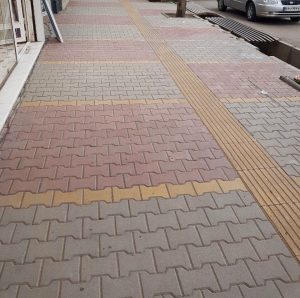 مرحله ششم: پس از چیدن قطعات نباید بر آن پاگذاشت در بین درزها شن خشک پاشیده می شود (به وسیله جارو) و سپس برای کوبیدن از دستگاه دارای سطح که آسیبی به سطح قطعات وارد نمی کند استفاده می شود. باید دقت نمود که در این مرحله  pvc سطح کفپوشها تمیز وخشک باشد. دور تا دور کار را می بایست برای عدم جابه جایی قطعات با جدول و یا هر قطعه دیگری قاب نمود. پس از کوبیدن توسط دستگاه می بایست با مخلوط  شن و آب سطح قطعات را پوشاند تا کلیه درزها کاملا پر شوند. پس از خشک شدن شن اضافه را از روی سطح جارو نمایید.